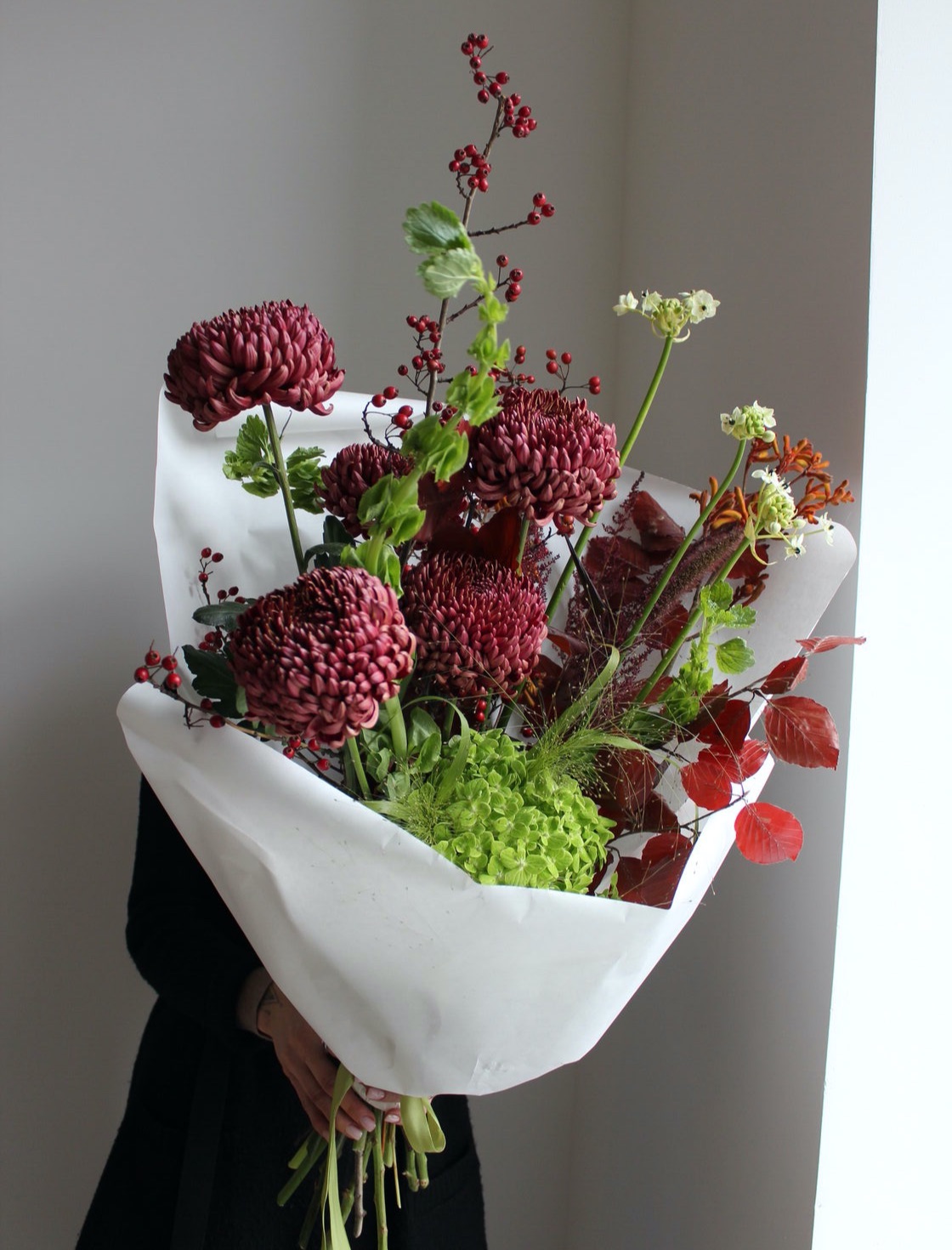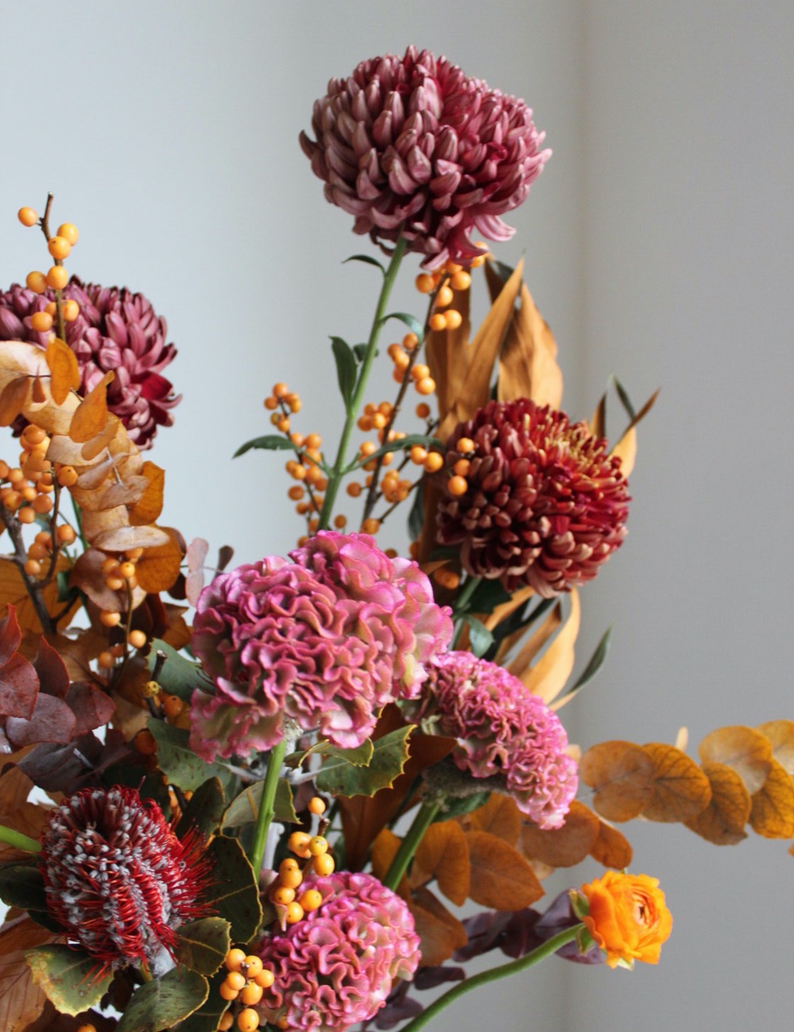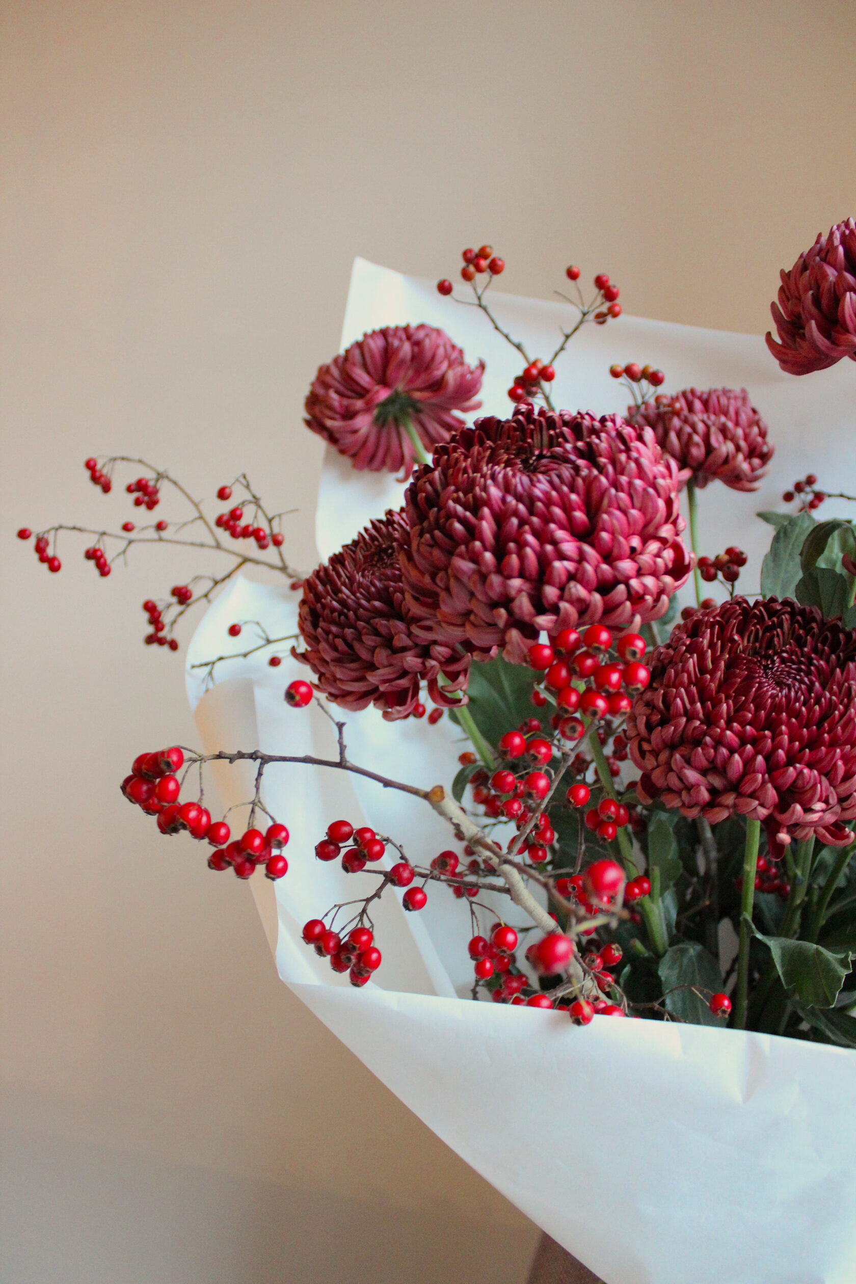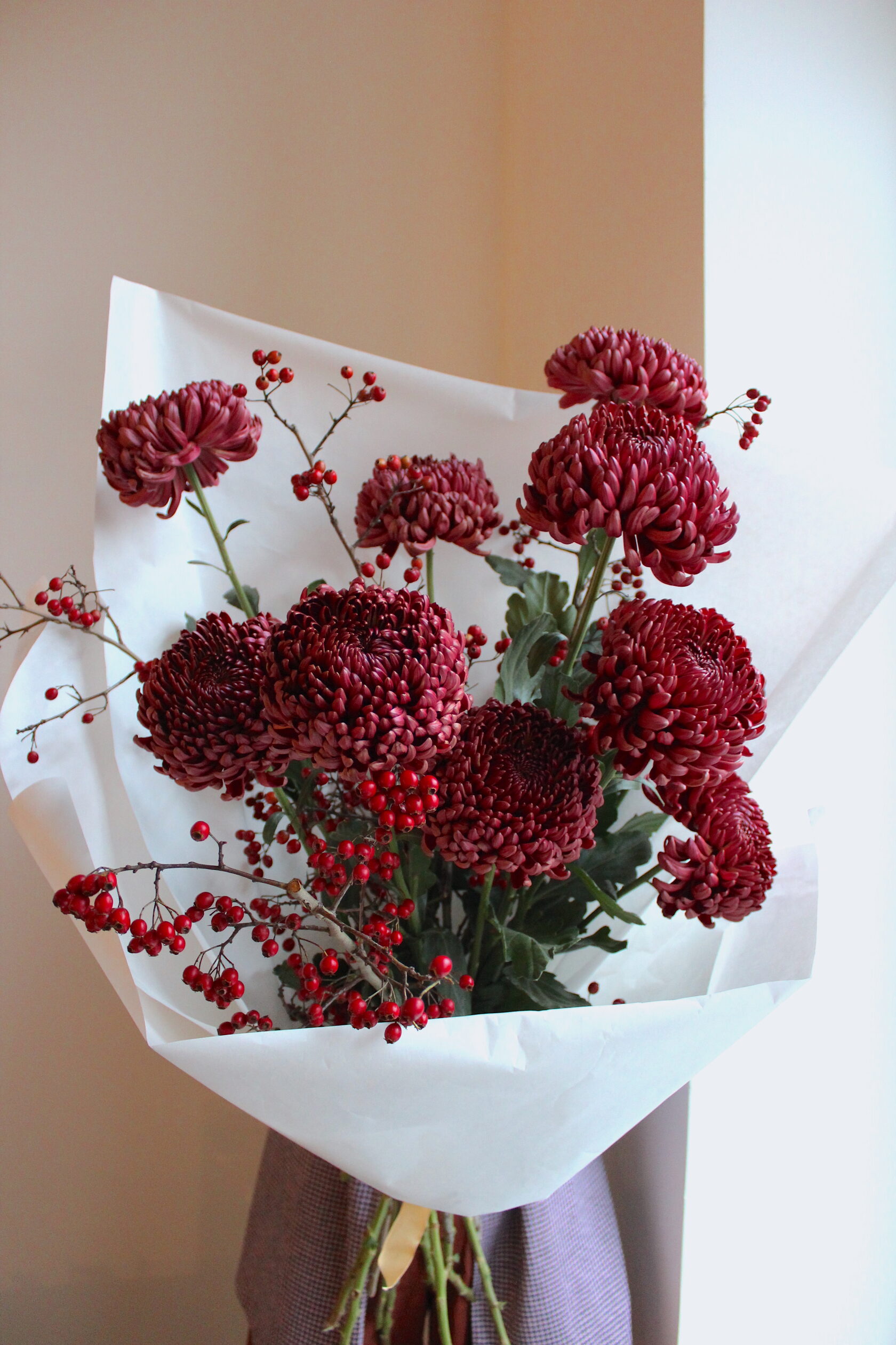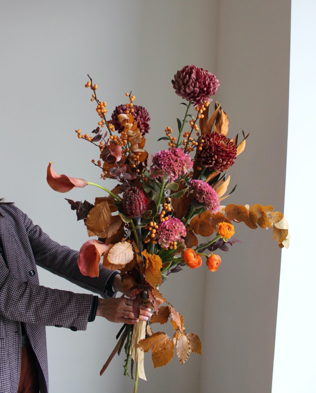 Букет в самой особенной гамме с прекрасными пионовидными розами и переливами осенних оттенков. А ягодки и листья, как напоминание о природе, которая отдает нам свои самые ценные дары. Тёплый, яркий, осенний ❤️